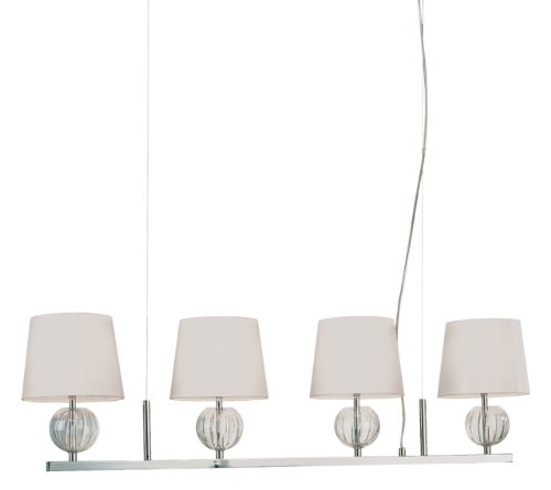 19521-022 Shade: White Features: -Four lighting Pendant.-Available in black or white shade.-Silver bar frame.-ETL certified.-Bulb base: E12.
