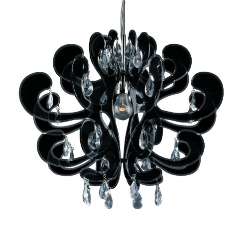 Set in a bevy of black translucent faux fleur-de-lis trimmed in obvious acrylic, the simple tear-shaped e26 mild base is reflected in a swirl of pear-inspired crystals.